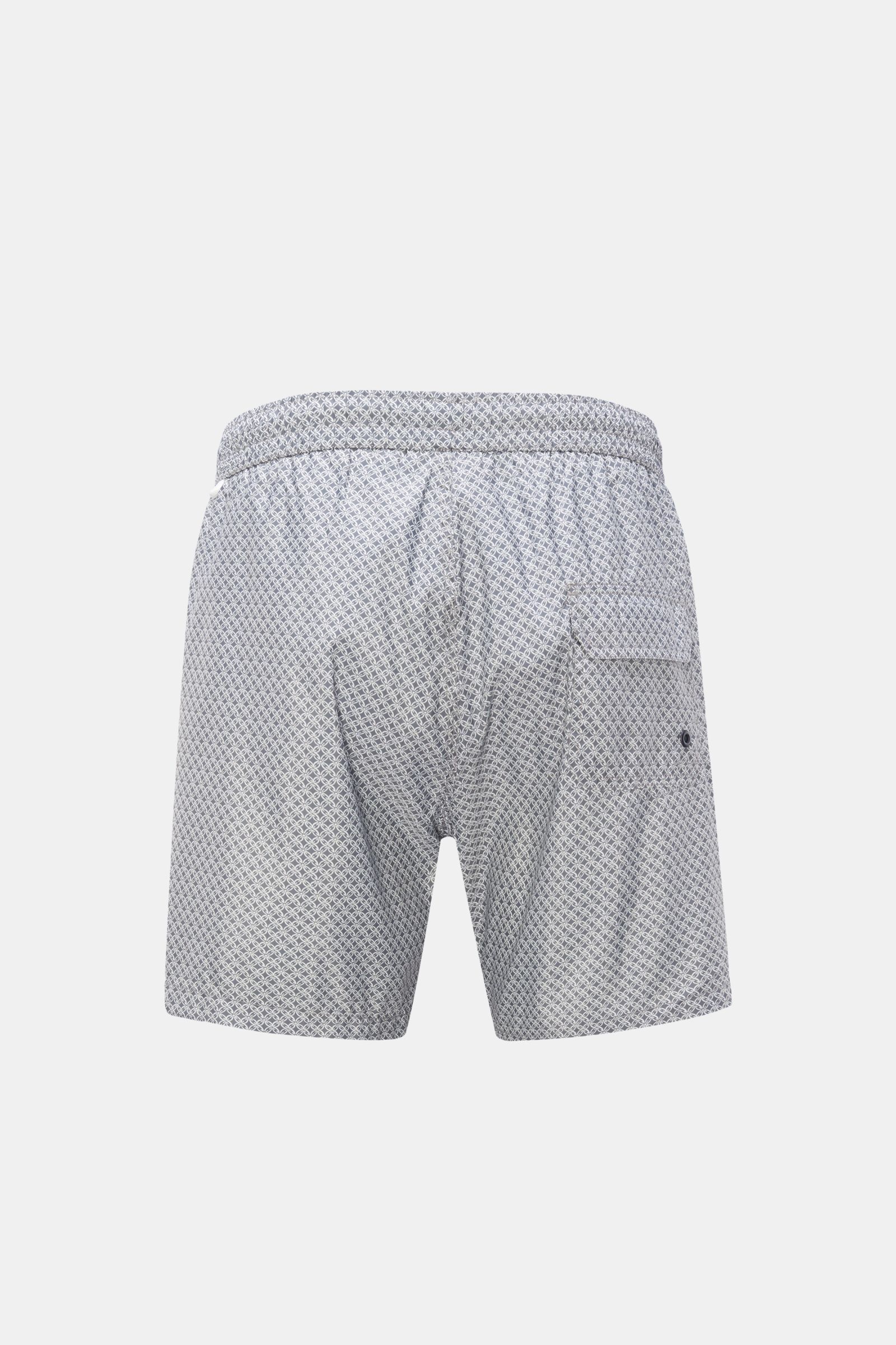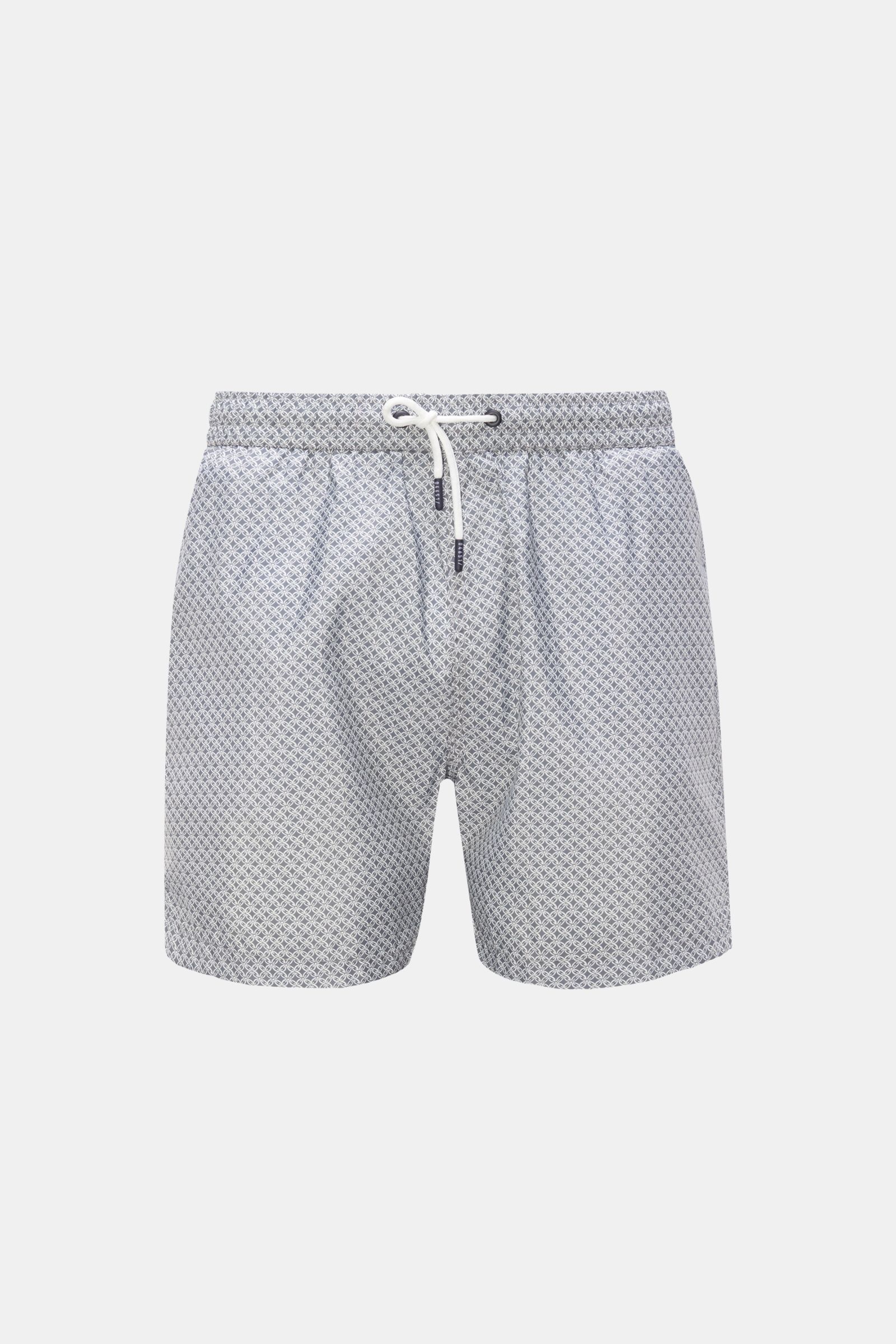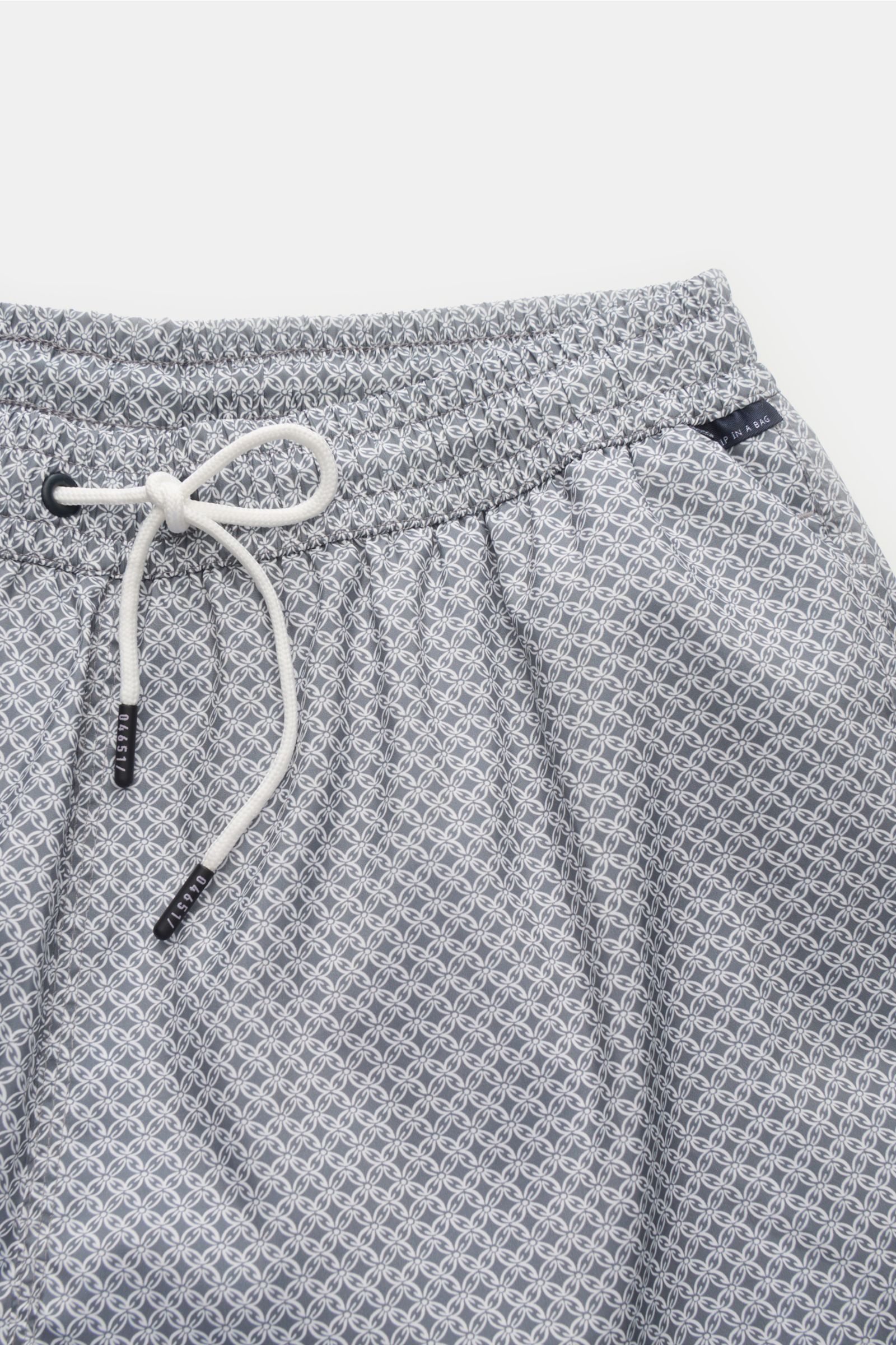 Mit dem von nordfriesischer Kachelmalerei inspirierten Allover-Print ist Insel-Feeling garantiert, egal, wo Sie schwimmen gehen– die Badeshorts 'Tile Swim' von 04651/ A TRIP IN A BAG ist ein sportliches Essential für die Reisegarderobe.