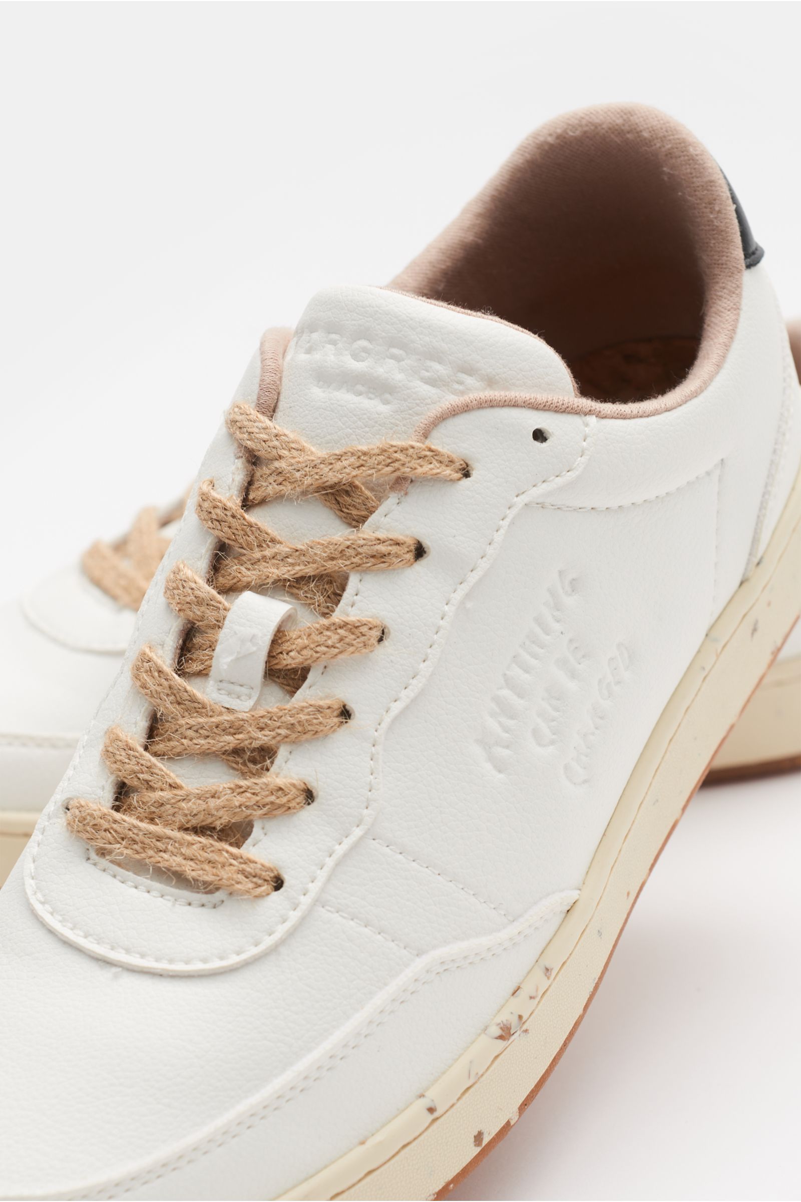 Diese Variante des Modells 'Evergreen' von ACBC erinnert mit ihrer strukturierten Haptik an genarbtes Leder und verfügt über ein softes Frottee-Futter sowie eine Einlegesohle aus Kork und eine Laufsohle aus recyceltem Gummi.
