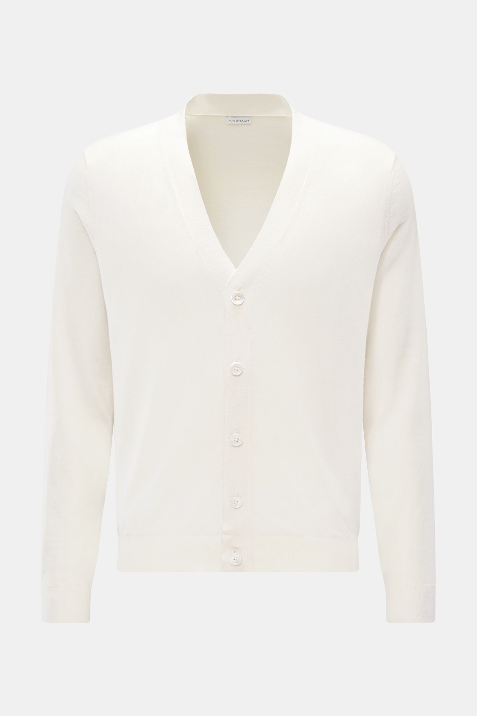 Basic aus Feinstrick für die Übergangszeit: Der VON BRAUN Cardigan ist ein Klassiker aus reiner Merinowolle und der perfekte Allrounder für Ihre Office-Garderobe.