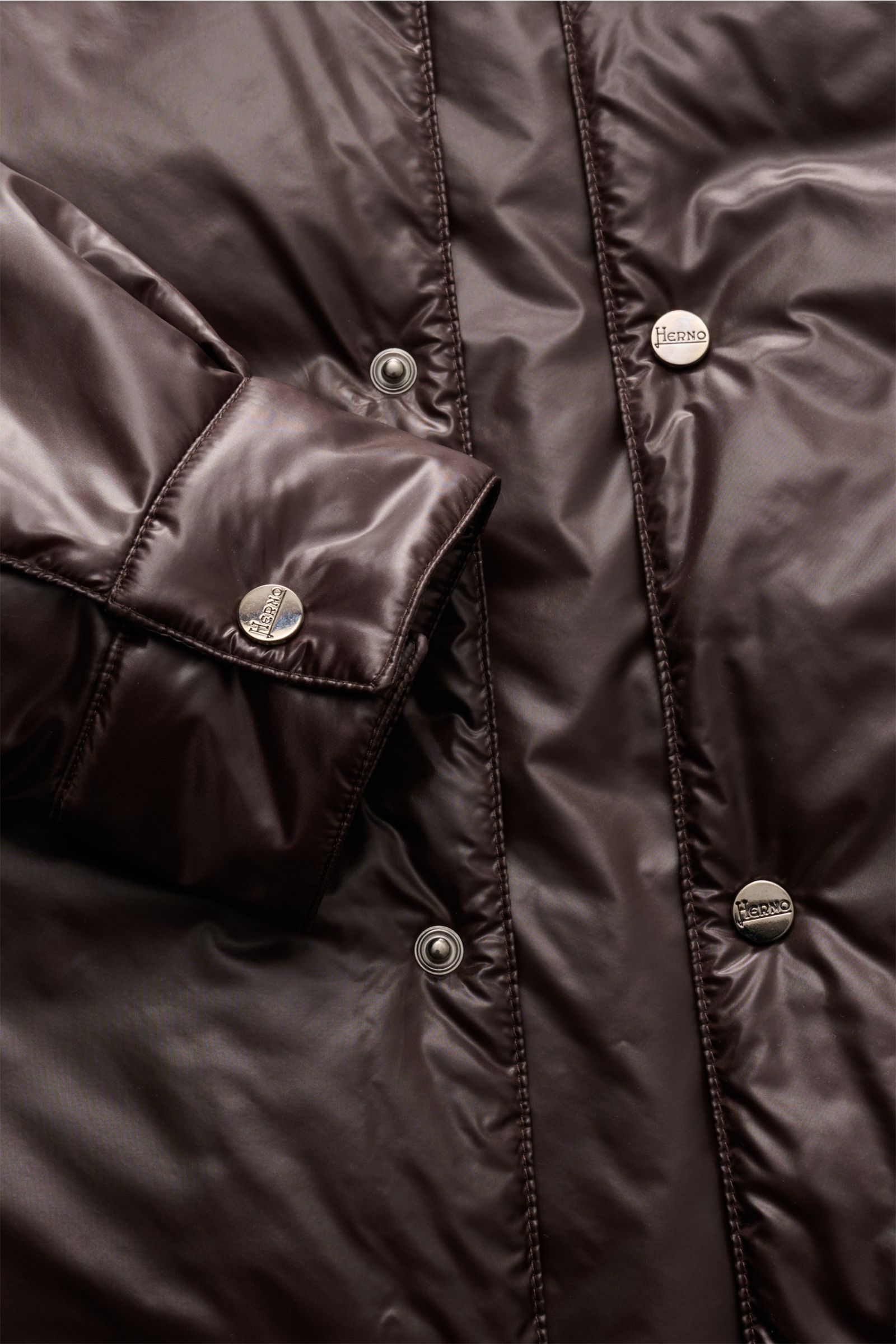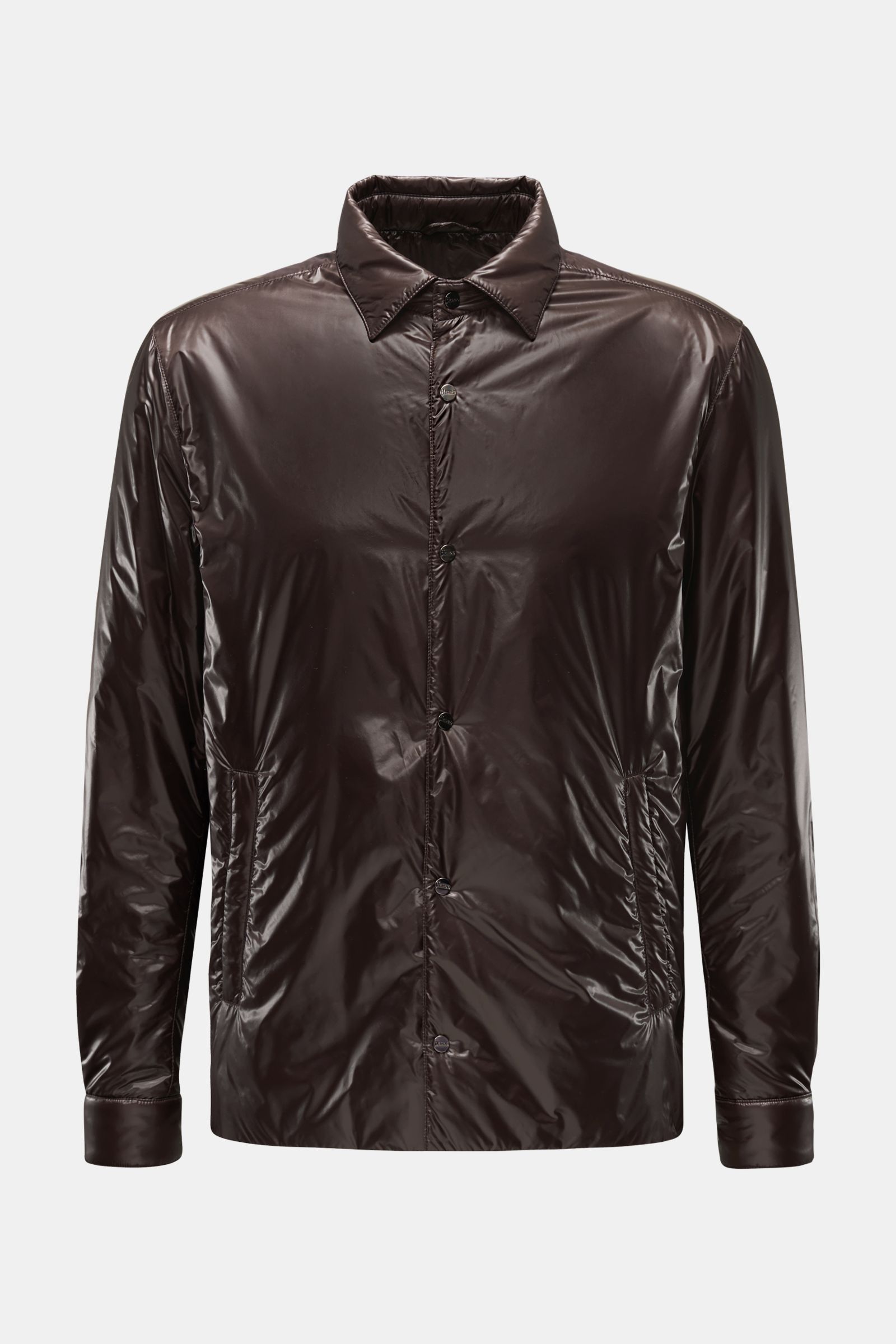 This jacket from HERNO combines extravagant, shiny material with practical functionality – perfect for the transitional season. The high-quality microfibre with its smooth, slightly reflective surface creates a modern look, while the lightweight padding and water repellent properties offer protection. With its slim fit, jetted hip pockets and turn-down collar, it is stylish and versatile enough for changeable weather.