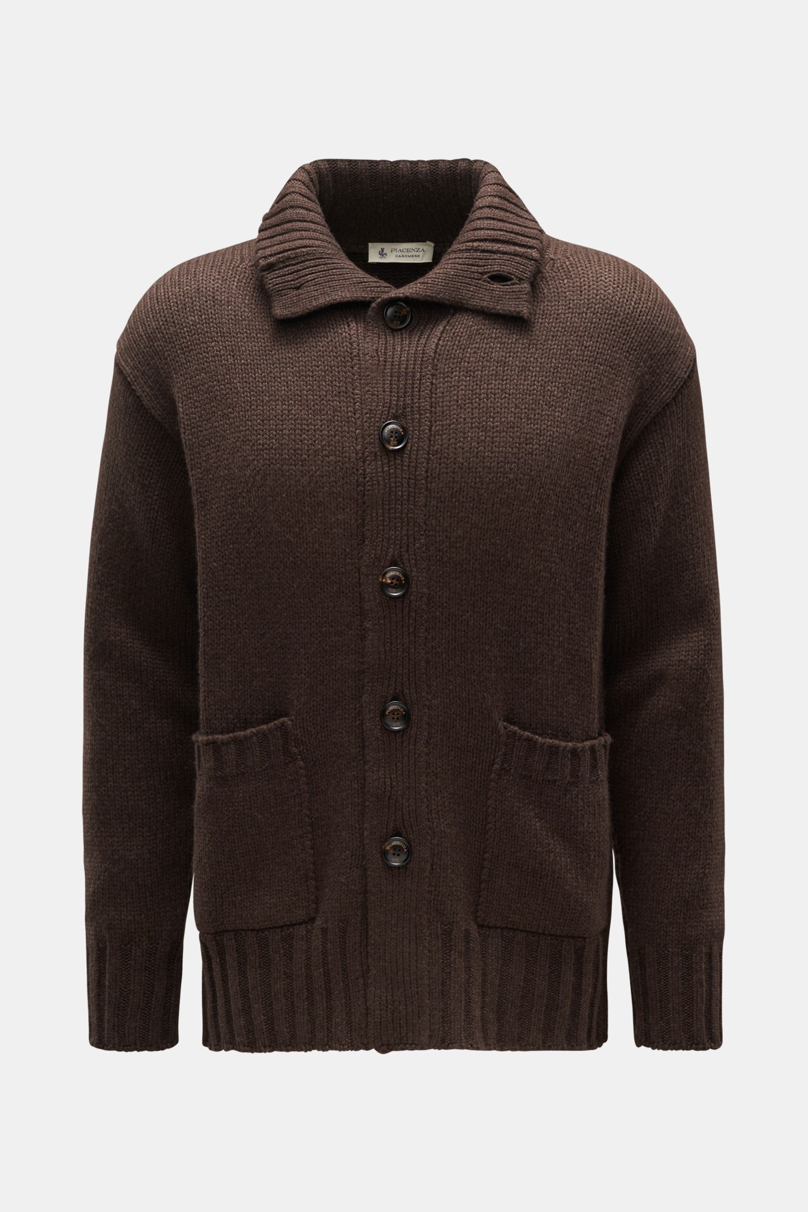 Wide rib knit bands, large horn buttons and soft chunky knit – this cashmere cardigan by traditional Italian label PIACENZA ticks all the boxes for cosy knitwear.