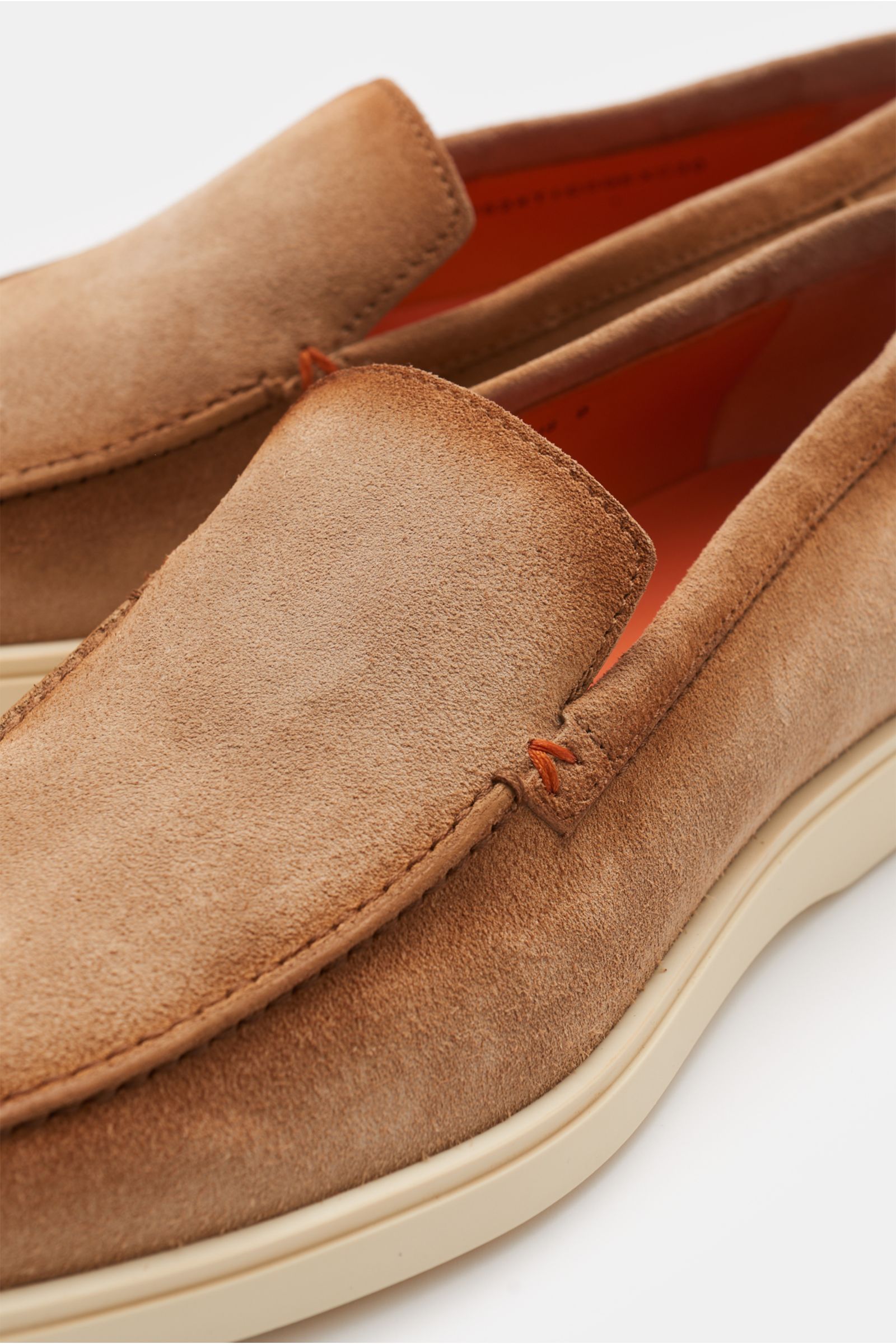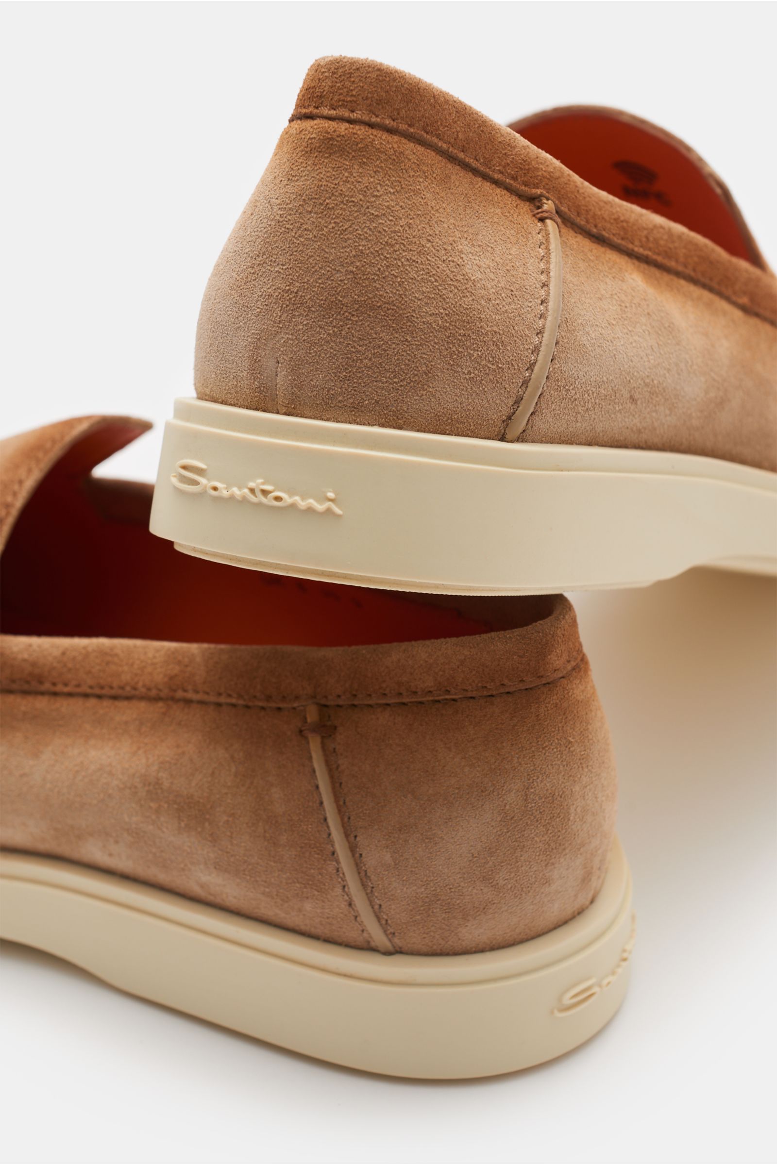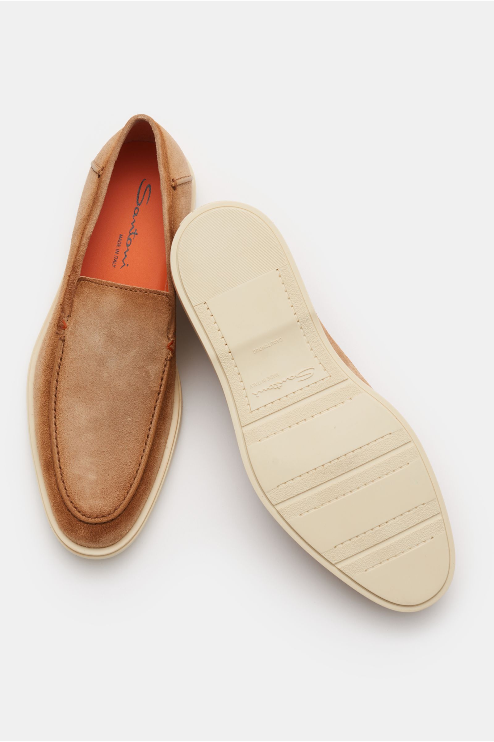 A light-coloured, flexible rubber sole gives these minimalist suede loafers from SANTONI a comfortable, modern twist.