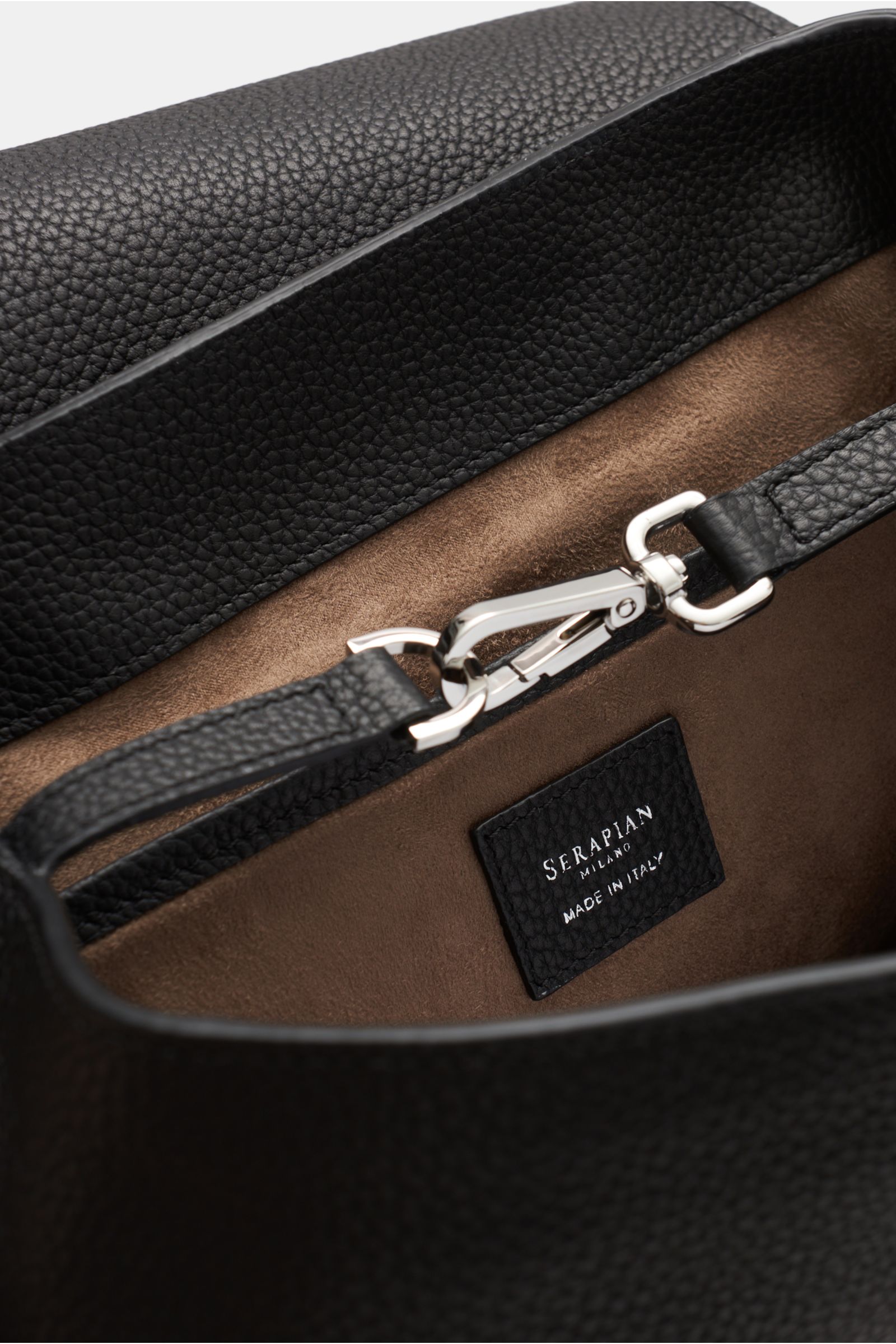 Practical everyday piece in a luxurious design: This elegant backpack made from strikingly grained leather by SERAPIAN offers plenty of space for all your everyday essentials and looks stylish both in the office and as an accessory to elegant casual looks.