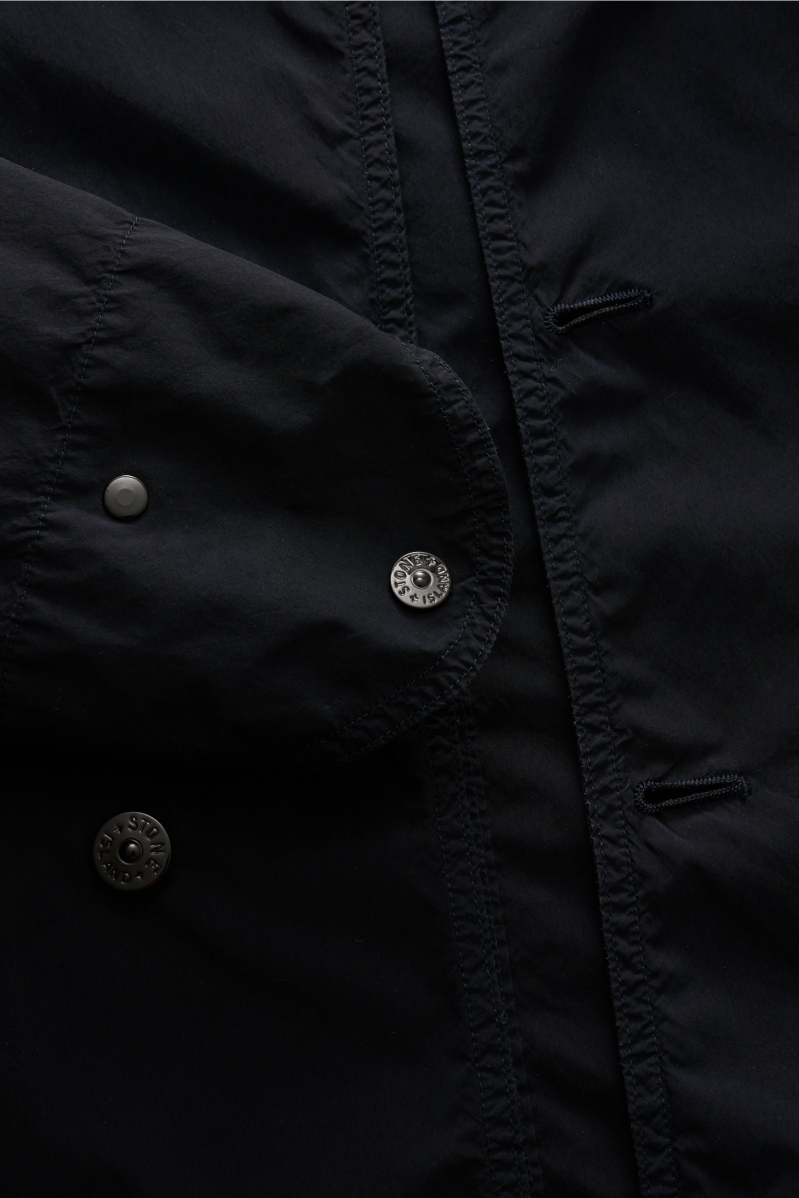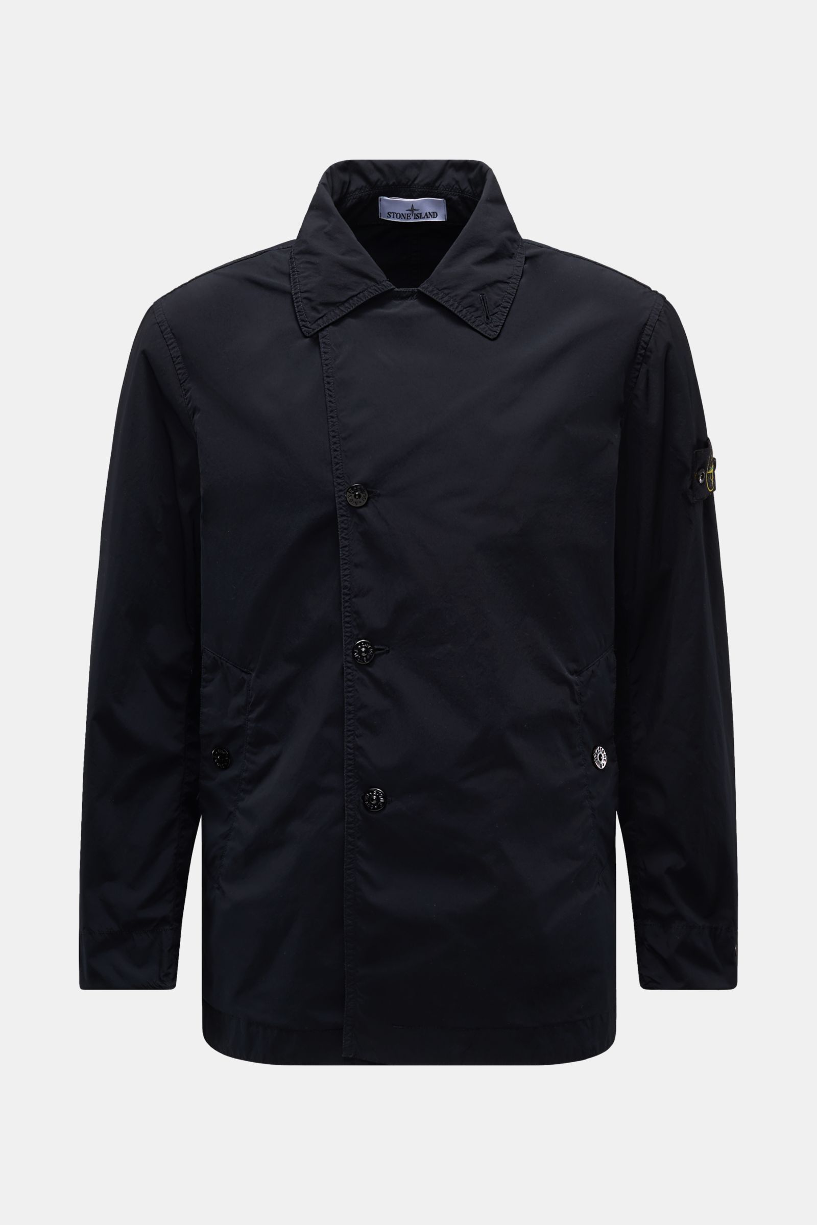 The signature compass badge and pea coat design in lightweight microfibre make this jacket by STONE ISLAND a monochrome highlight for your casual transitional wardrobe.